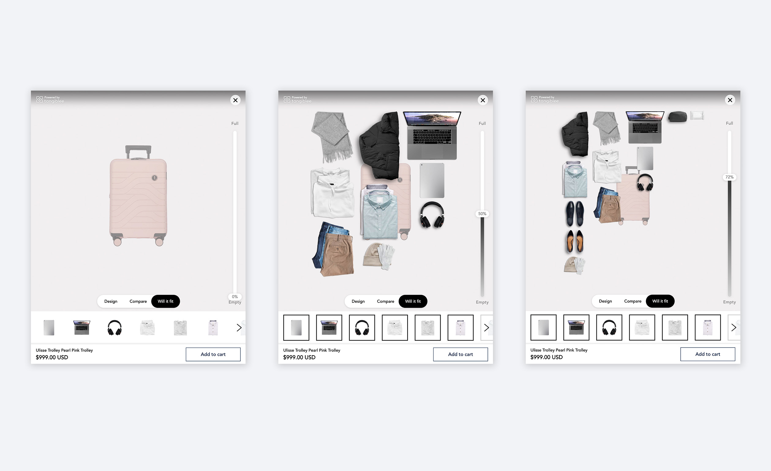 Allow shoppers to visualize luggage compared to various airlines’ carry-on limits.